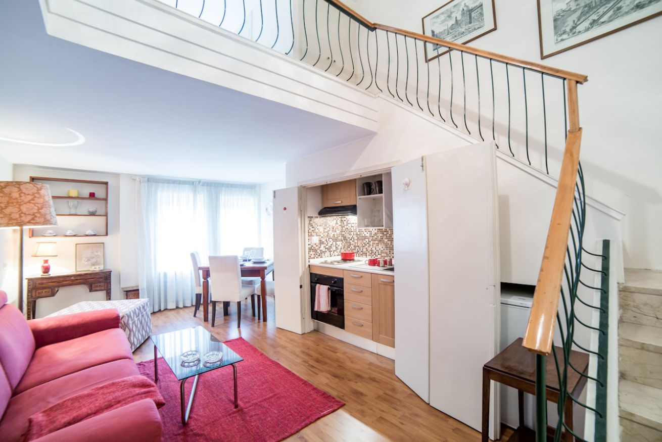 Appartamento composto da soggiorno con divano letto ed angolo cottura, camera da letto al piano di sopra con bagno.